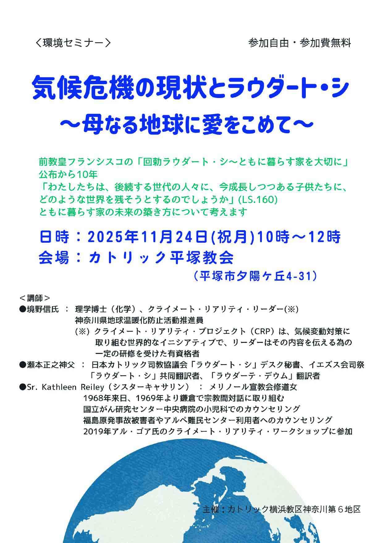 問い合わせ:カトリック横浜教区 本部事務局 谷脇神父 TEL 045-662-5585