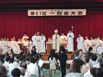 10月13日(祝)、強羅の函嶺白百合学園で、横浜教区の一粒会大会が開催されました。今年は第6地区が当番にあたり、平塚教会から多くの方が運営スタッフとして参加しました。
