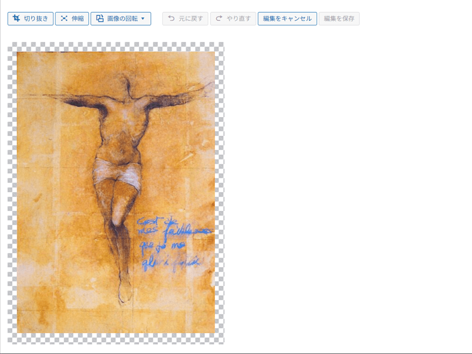 画像を選択した後、「画像を編集」をクリック、「切り抜き、伸縮」等の機能を使って画像を加工していくことになりますが、小さい画像を大きくできない等の制約があり、扱いづらくもあるので OnLine で使える無料ソフト PIXLR で、あらかじめ加工した画像をとりこむほうがカンタンです。